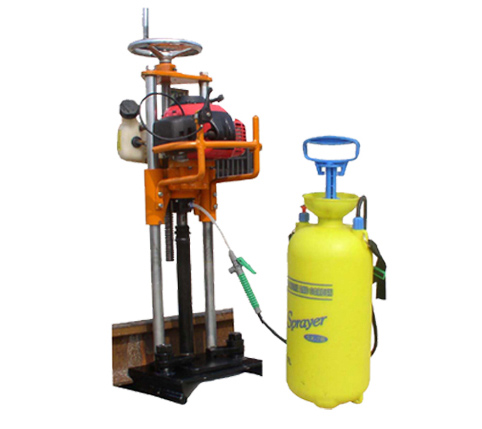 該機(jī)采用主機(jī)和夾具分體方式,具有快速下道特點(diǎn),在作業(yè)中如需下道,可直主機(jī)一同拔出,拿下底座,將主機(jī)放到安全地方,待火車(chē)通過(guò)后先將底座放置在鋼軌上,調(diào)整好底座,將主機(jī)導(dǎo)向桿與底座導(dǎo)向套對(duì)接,可繼續(xù)鉆取。提高了工作效率,減輕了工人的勞動(dòng)強(qiáng)度,是線路鋪設(shè)和維修的必備工具。